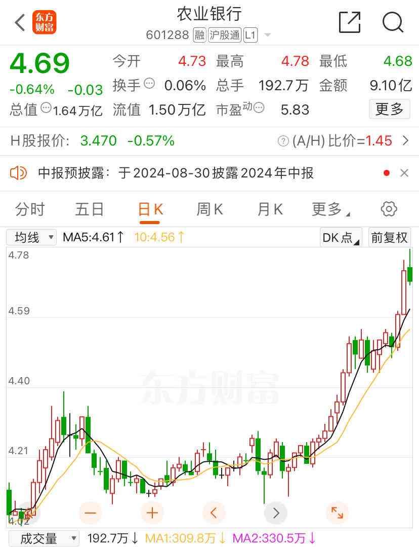 16日早盘,银行股继续保持涨势。五大行盘中再创新高,其中中国银行一度涨超2%。不过,截至发稿时,五大行股价均冲高回落。
