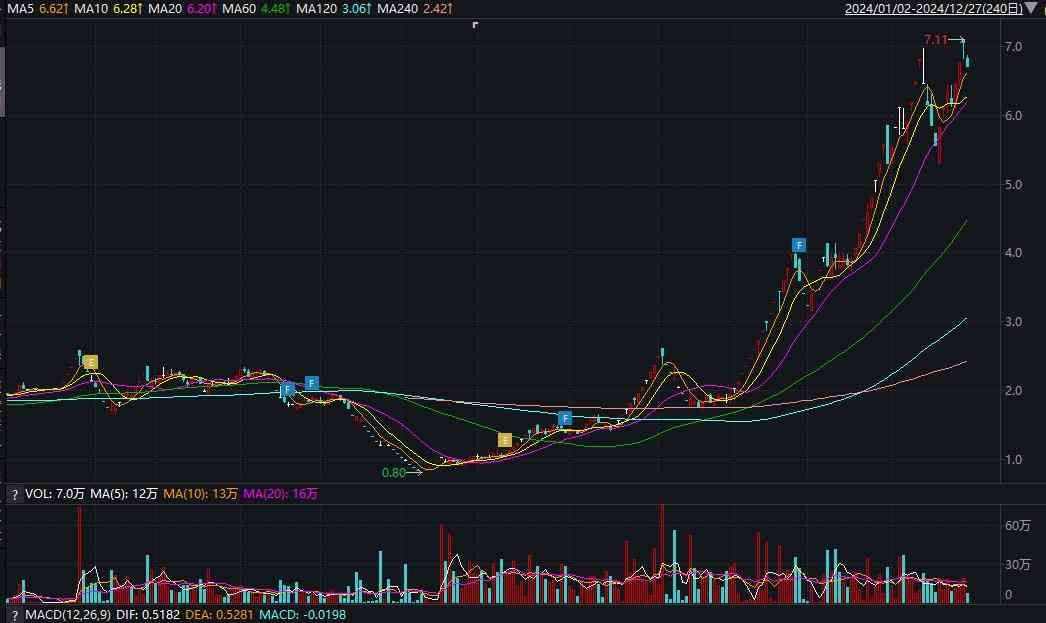 汇金科技行情自9月6日启动,至12月12日股价累积涨幅约7%。股价从8元/股附近涨至超过60元/股,最新收盘价仍有52.60元/股,总市值173亿元。
