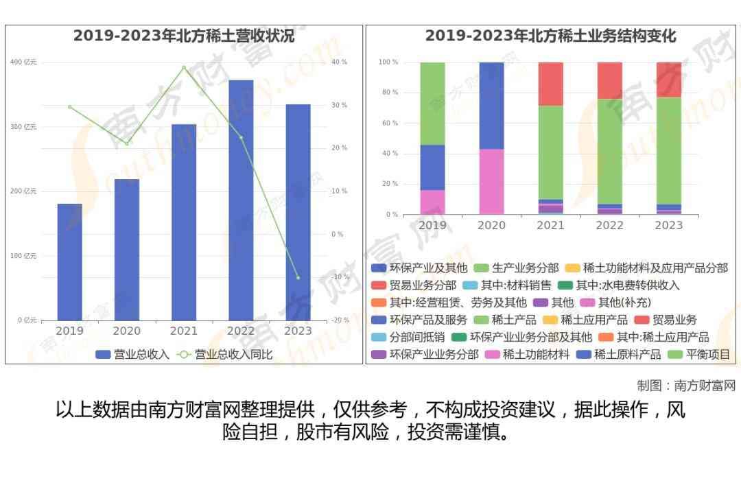 北方稀土于1997年9月24日在上海证券交易所上市,公司主营业务为生产经营稀土原料产品、稀土功能材料产品及部分稀土终端应用产品。