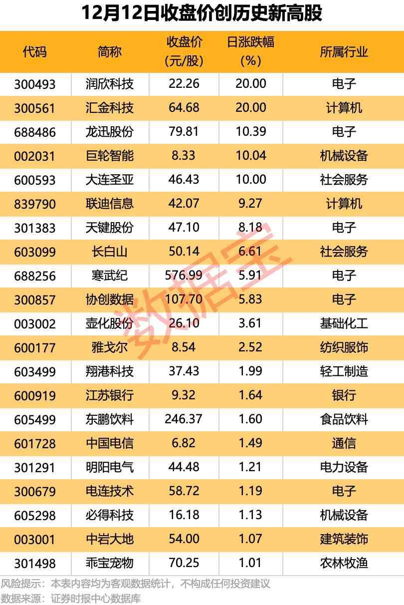 21股收盘价创历史新高