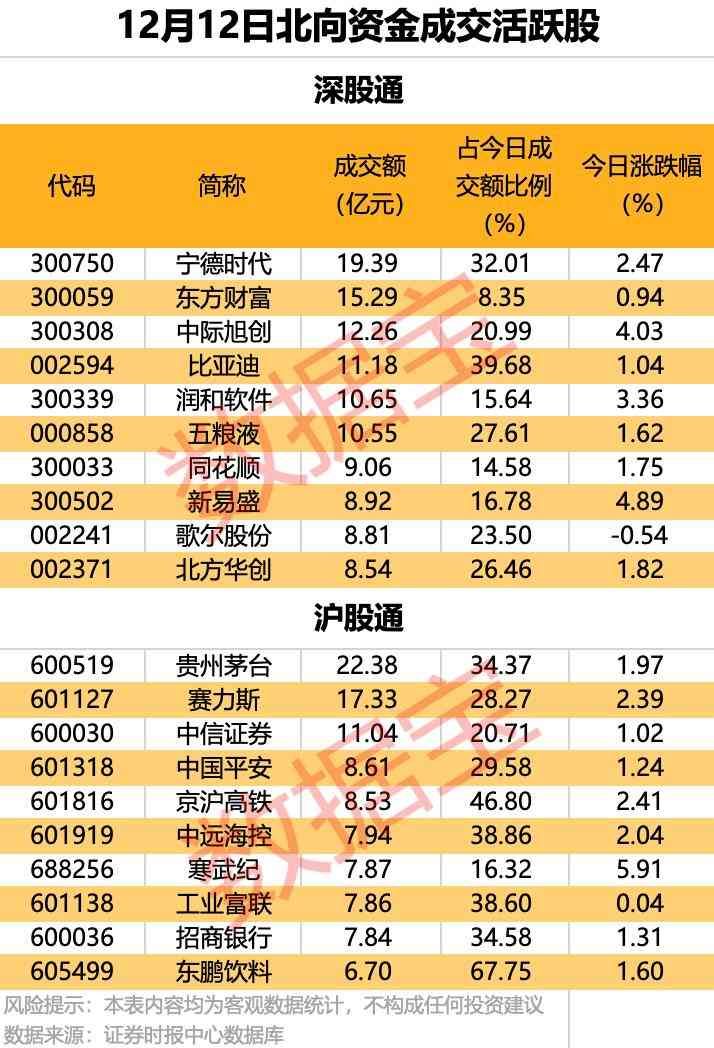 北向资金成交活跃股