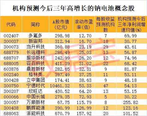 哪些钠电池概念股最具增长潜力?5家以上机构一致预测数据显示,今后三年净利润增速均有望超过20%的股票仅15只。机构预测净利润增速均值最高的是万顺新材,其次是鹏辉能源、派能科技,这3股净利润增速均值均翻倍。