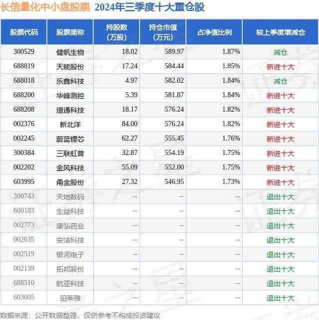 长信量化中小盘股票的前十大重仓股如下: