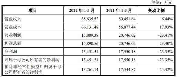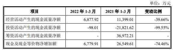 2022年1-3月,中无人机实现营业收入85,635.52万元,较2021年同期增长6.44%;净利润为13,451.51万元,同比减少23.35%;经营活动产生的现金流量净额为6,877.92万元,同比减少39.66%。