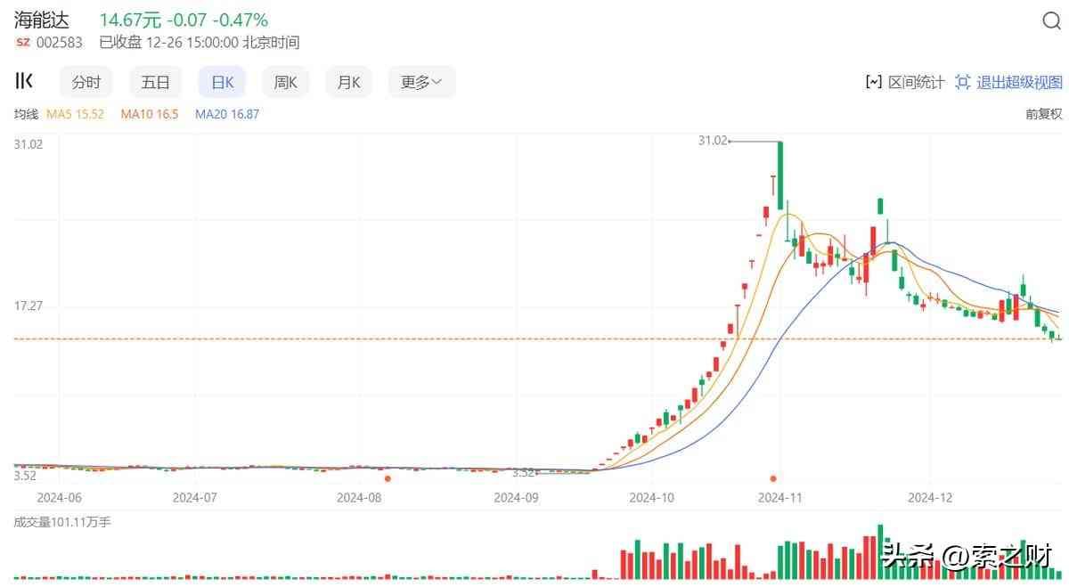 截止12月26日,10月来,我发现共有15家低空经济概念股大涨超过50%,更是有5家涨超1%。下面来看下详细的数据。