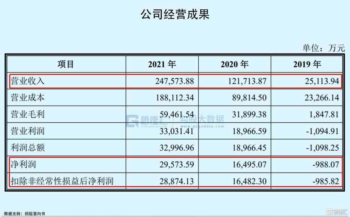 近三年公司营收由2019年的2.51亿元增至2021年的24.76亿元,年复合增速高达314%;相对应的归母净利润分别为-985.82万元、1.65亿元和2.89亿元,实现扭亏转盈。