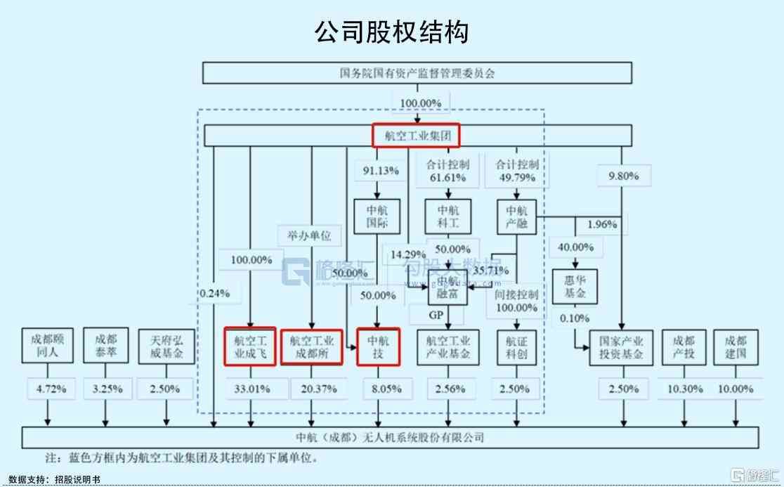 中无人机成立于27年,由国资委控股的航空工业集团及另外10家军工相关企业出资设立而来,目前公司控股股东为航空工业成飞,其持有公司33.01%的股份,而其背后的航空工业集团为实际控制人。