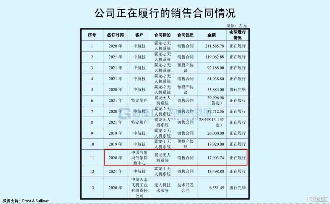 不过,公司在民用无人机领域还处于探索阶段,其业绩贡献有限。报告期内,金额超过5万元的订单仅发生一例,即2020年与中国气象局气象探测中心签订的1.79亿元销售合同。