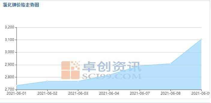 卓创资讯统计,今日氯化钾吨均价为3105元,上涨6.76%,6月1日均价还未2733元,9天时间上涨了13.6%。 6月7日,安徽八斗化工有限公司氯化钾经销报价2850元/吨左右,报价上涨2元/吨,一天上涨7.5%。我国氯化钾以来进口,因为港口库存比去年同期下降1多万吨,加上港口到货量减少,港口报价上涨更为迅速。