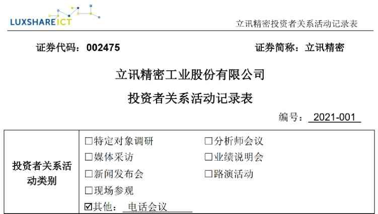 此次立讯精密调研活动,接待的有公司董事长、总经理王来春女士;副总经理、董事会秘书黄大伟先生;财务总监吴天送先生。