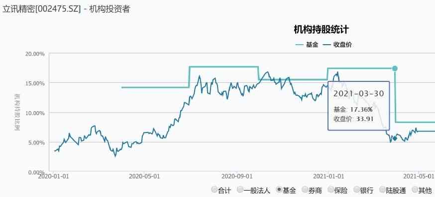 立讯精密一直是机构重仓的白马股,但今年却减持得比较多。拿公募基金来说,去年四季度末基金的持股数量合计为12.16亿元,基金持股比例高达17.36%;但是到今年一季度末,基金持股数量降至5.82亿元,持股比例降至8.29%。