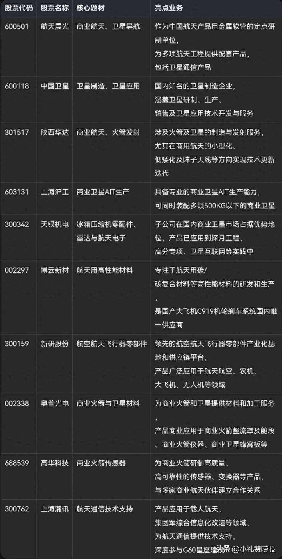 这些核心龙头股,凭借各自在商业航天领域的深厚积累和独特优势,成为了投资者眼中的香饽饽。它们不仅代表着中国商业航天产业的未来发展方向,更在各自的细分领域内展现出了强大的竞争力和创新能力。