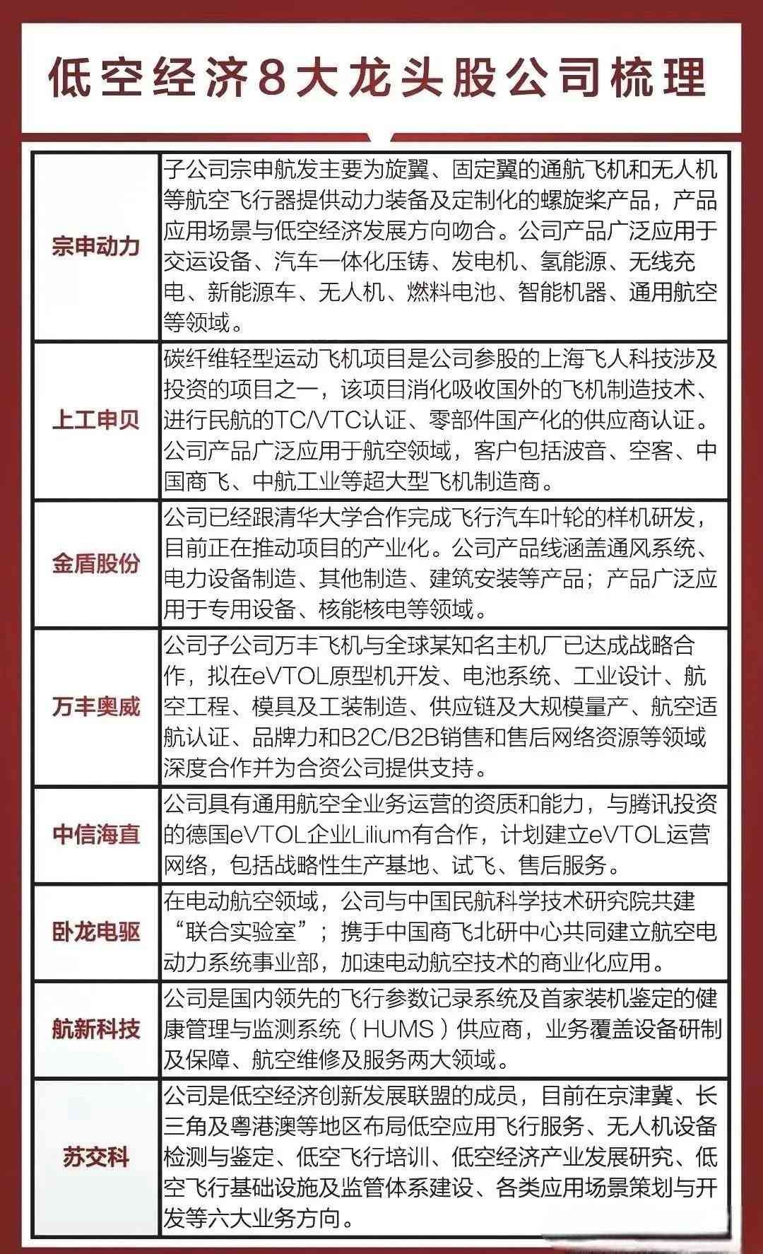 航空业股票龙头股,低空经济政策东风起,龙头股清单大揭秘:概念股+龙头股