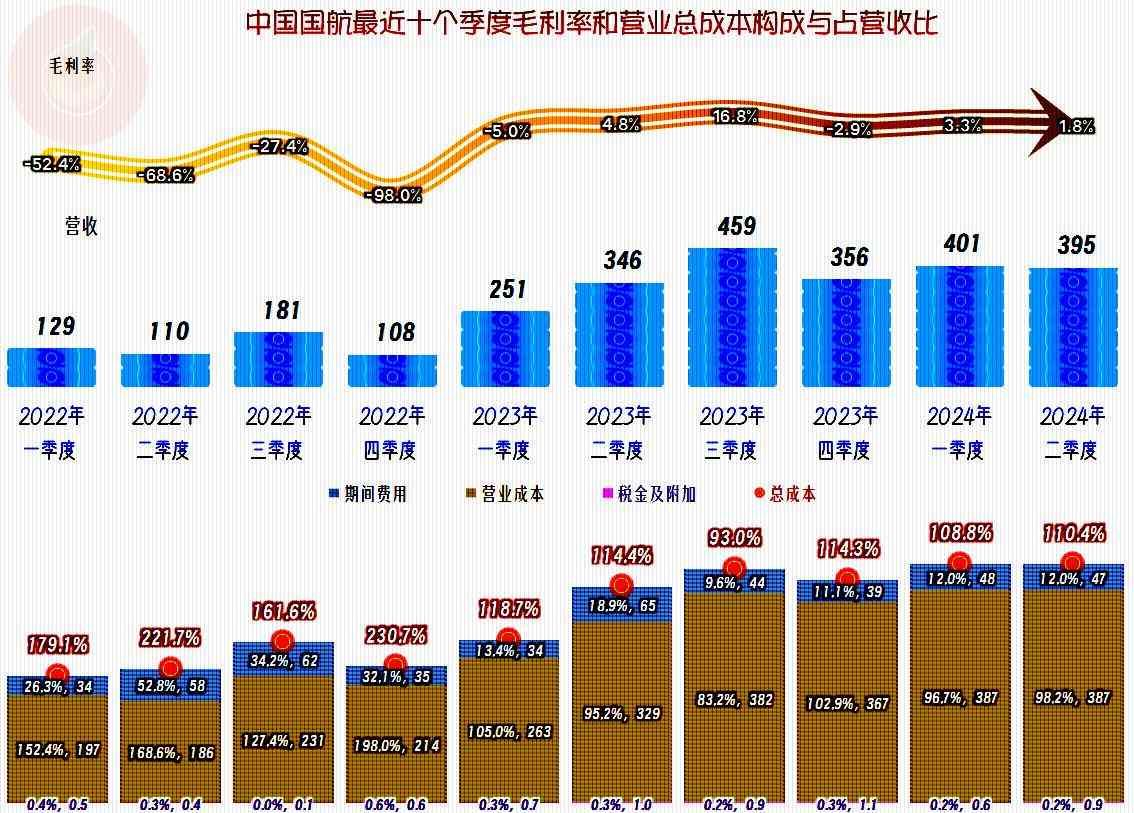 由于中国国航2023年上下半年的毛利率差异较大,如果按同比看,2024年上半年两大业务的毛利率都在增长;如果再按下半年是旺季看,似乎全年的数据有可能会相对好很多。只是,把“如果”变成现实,还需要下半年过了才知道。