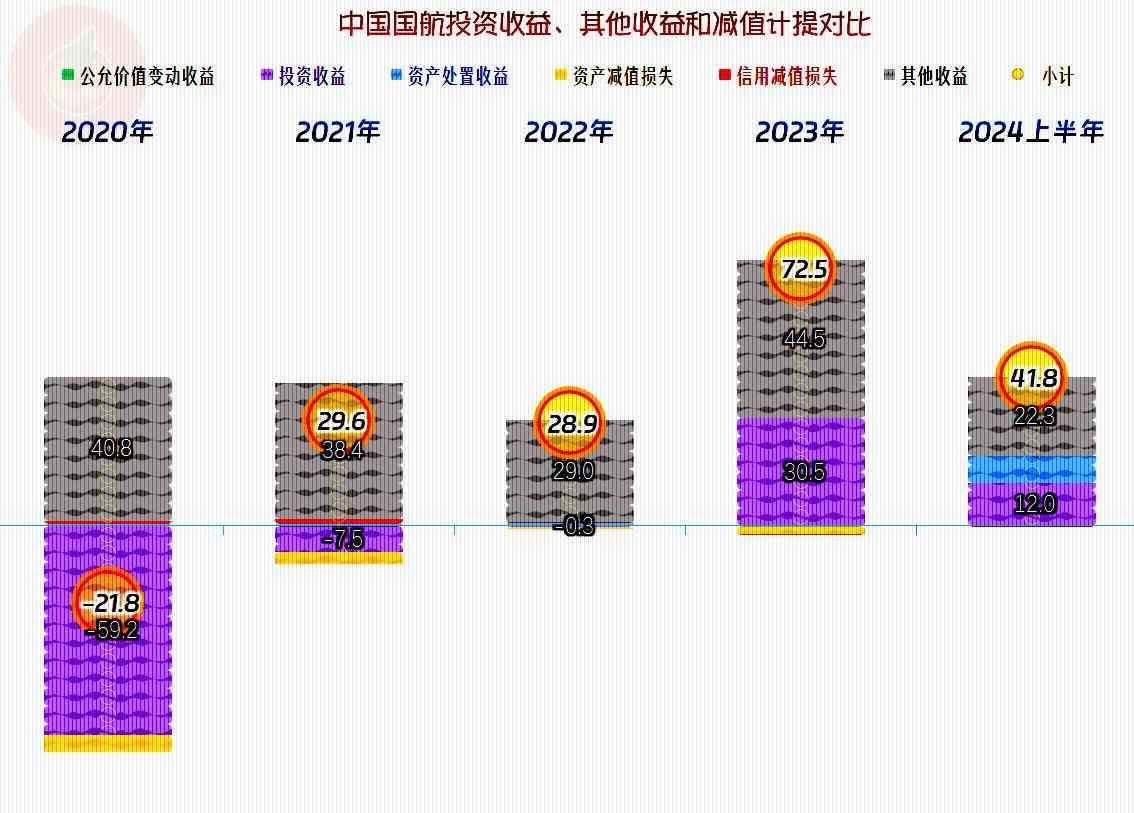 由于应收款和存货等对航空公司都不重要,毕竟他们也不让我们坐了飞机后再付机票款,所以中国国航的资产和信用减值损失都不高。“合作航线收入”、政府补助和对联营企业的投资收益都起到了较大的作用。最近一年半,这些原本“锦上添花”的影响,虽然没能“雪中送碳”,也算是送了件皮衣吧,让其亏损不至于太过严重。
