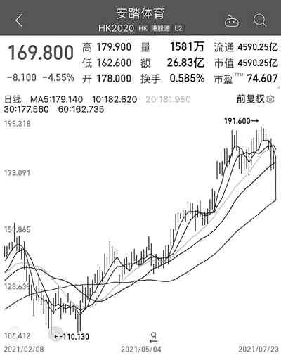 业绩催化下,安踏和李宁迎来了股价上涨周期。截至7月23日收盘,安踏体育每股报价169.8港元,市值达到4590.3亿港元。今年3月,安踏体育每股报价最低约110港元;而李宁每股报价83.85港元,市值2092亿港元,相较3月最低39.302港元的价格已上涨113.35%。
