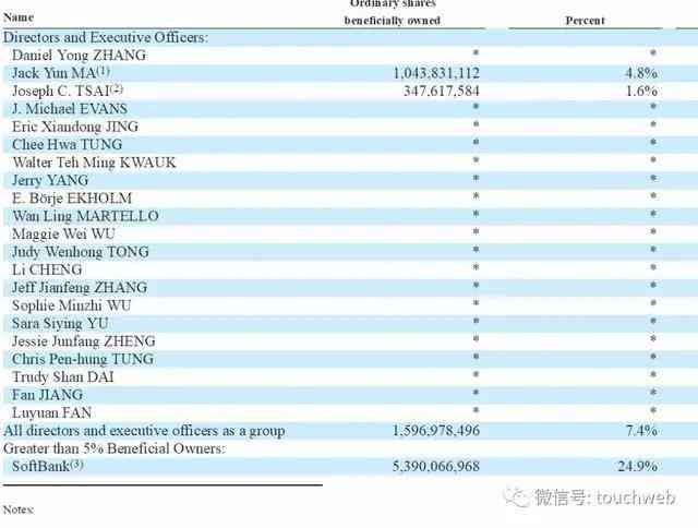 阿里股权曝光:软银持股24.8%蔡崇信持股1% 未披露马云股权