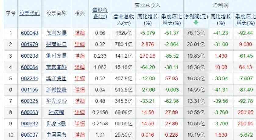 10家房企归母净利润超10亿元