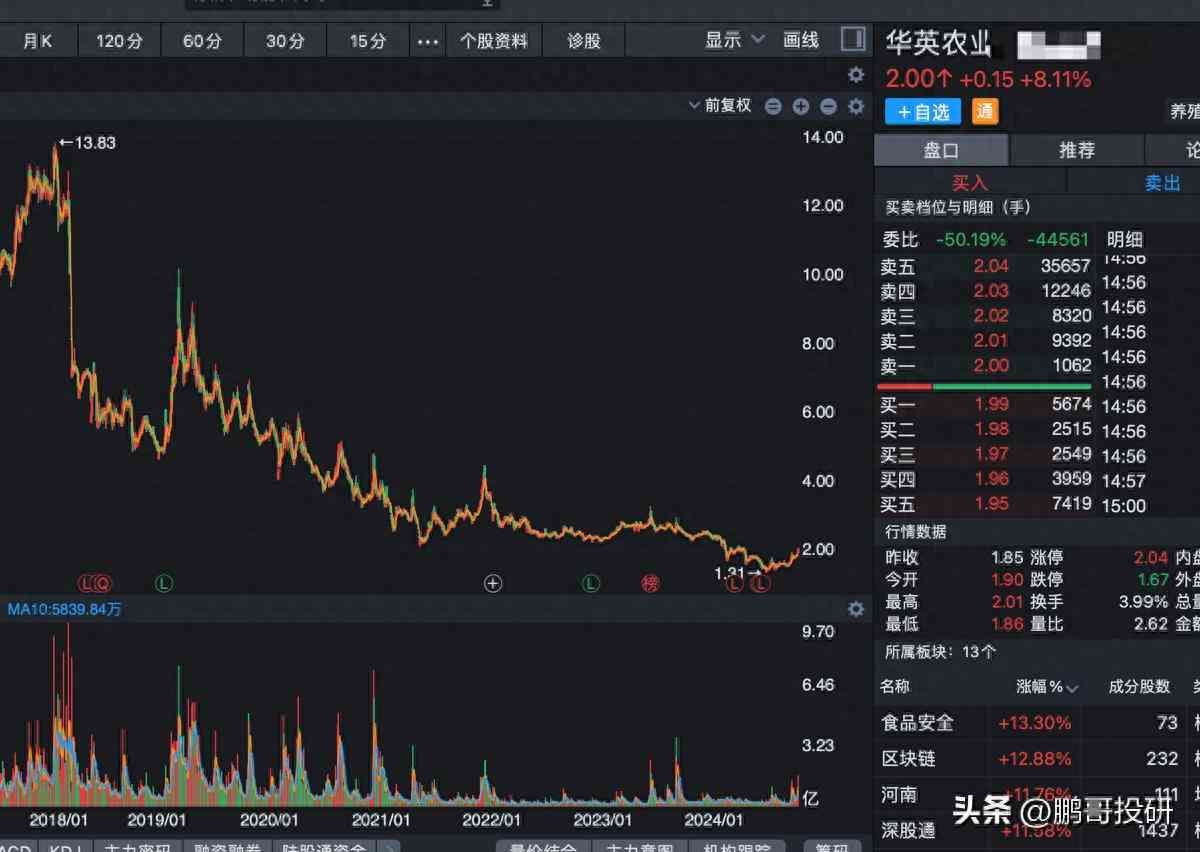第一家:华英农业,股价低至2元