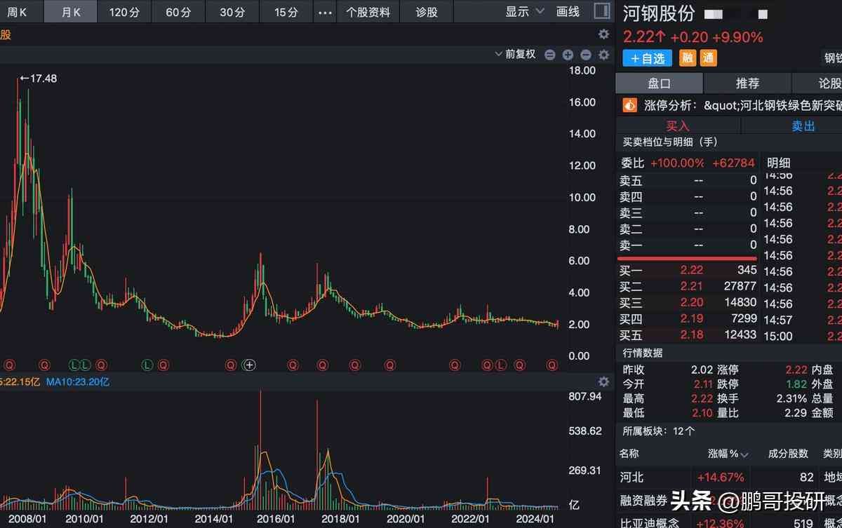 第九家:河钢股份,股价低至2.22元。