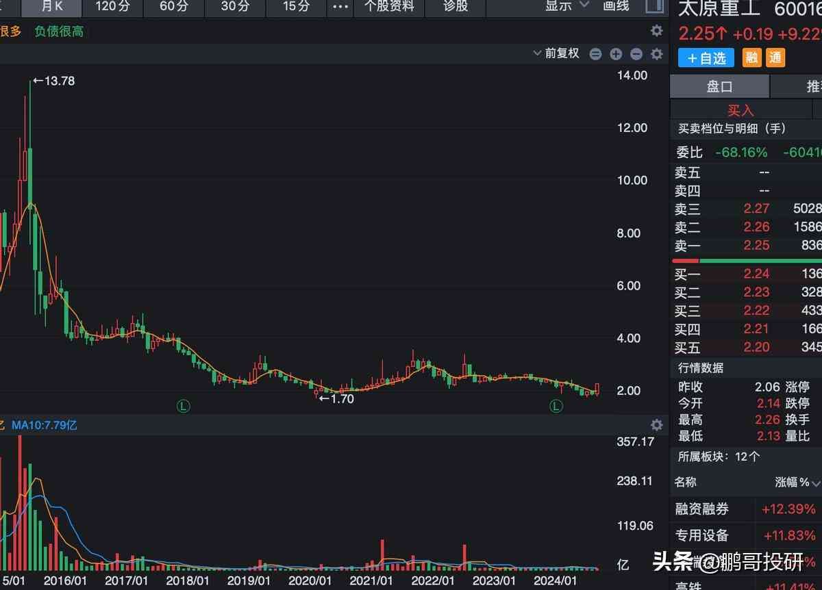 第十家:太原重工,股价低至2.25元。