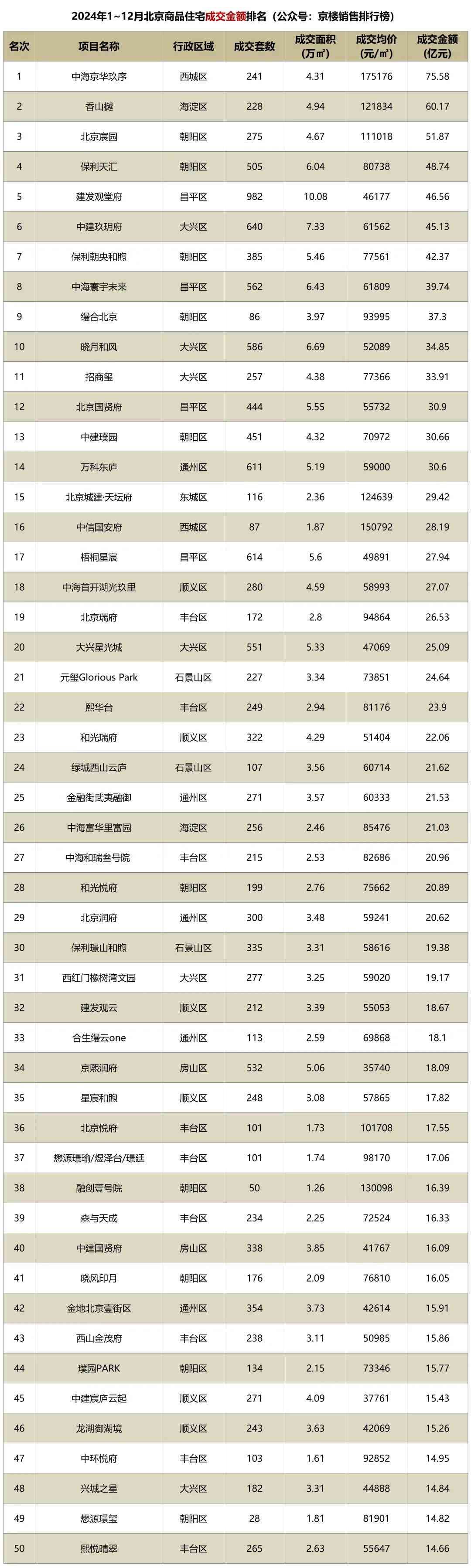 站在新年钟声刚刚敲响的时刻,就让我们根据这份全新出炉的排行榜,挖掘出值得2025年北京楼市参考的信号。