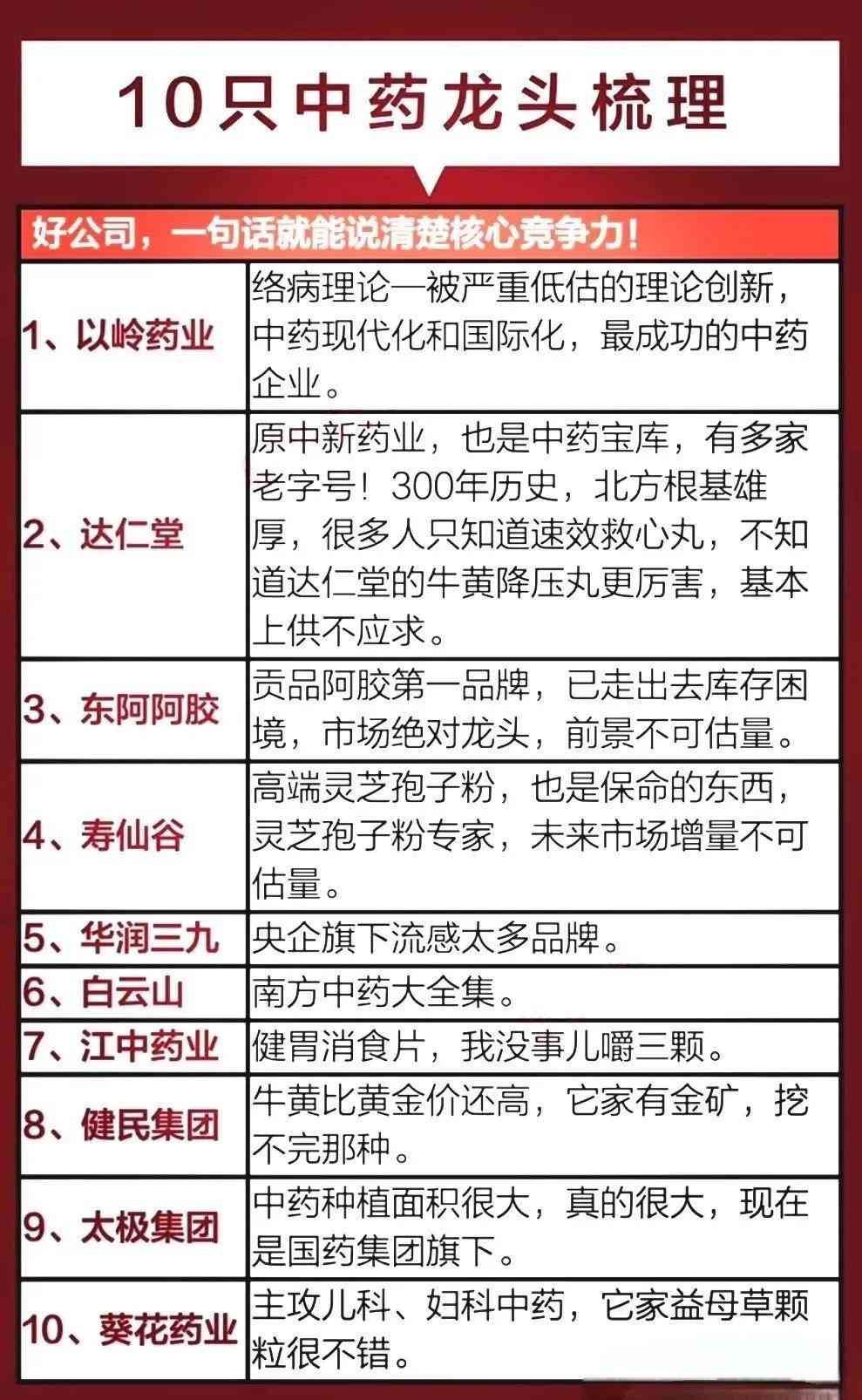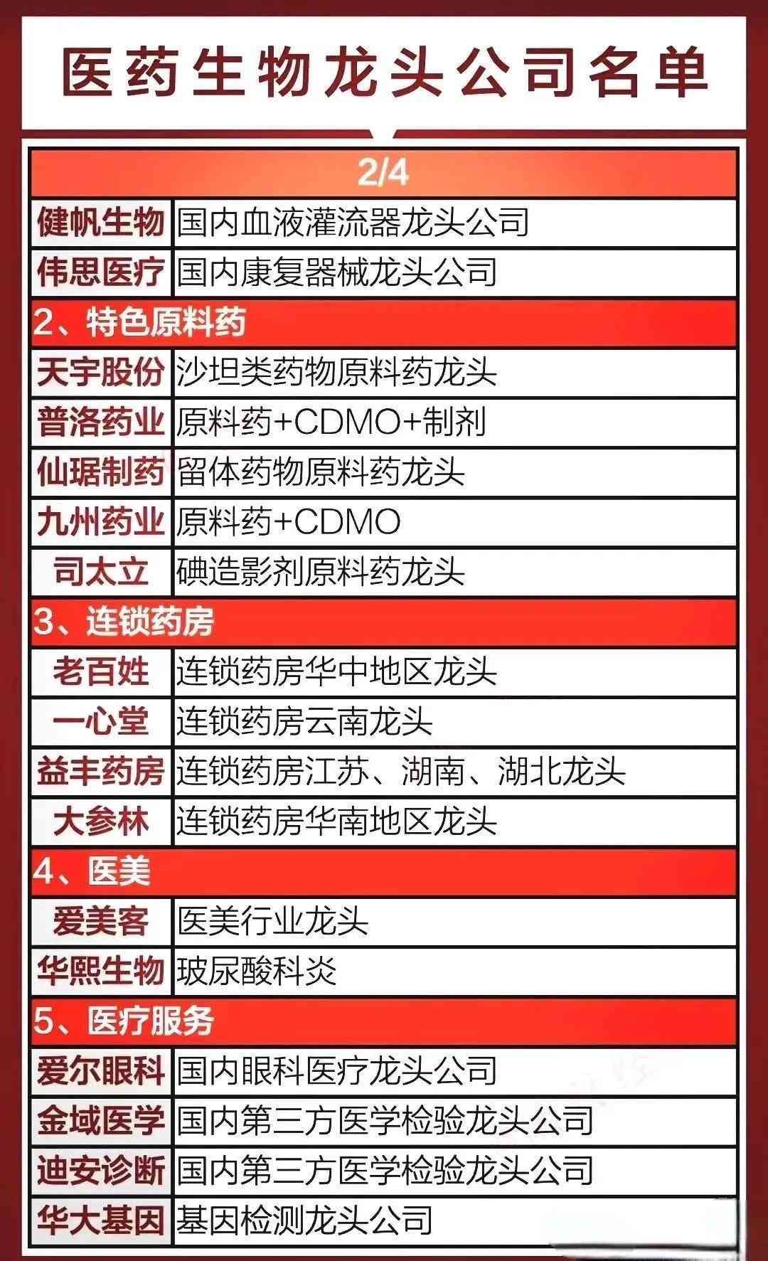 医药生物龙头全面梳理