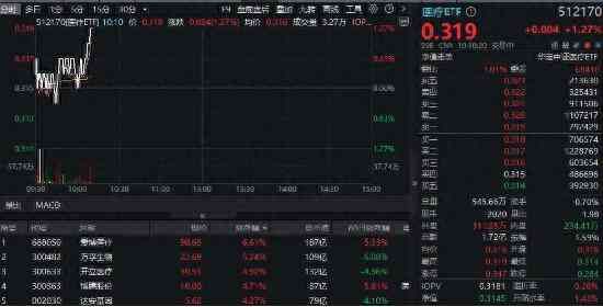 场内ETF方面,医疗ETF(512170)被动跟踪中证医疗指数,早盘小幅高开,盘中快速拉升涨超1%,表现显著强于大市,截至发稿成交额超1.7亿元。