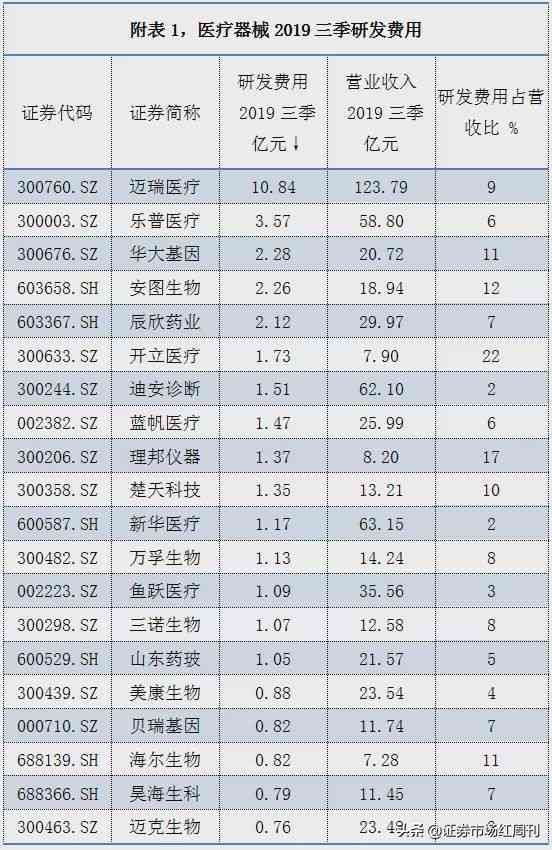 简单介绍了医疗器械的行业情况,下面直接上表。本文重点从医疗器械上市公司研发投入、成长性、盈利能力等几个角度进行梳理,挖掘对于医疗器械的“好股票”,以供读者参考。