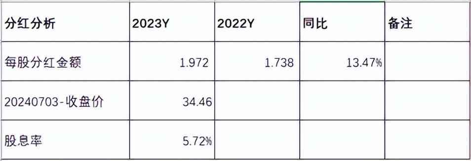如上图所示,按此预测2024年分红金额为2.031元,以当前价格34.46元作为成本价,除息后价格为32.488元,预计2024年股息率为6.25%,这个收益率相当不错,远高于银行一般理财产品。