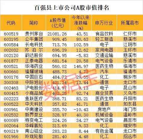 服装业股票龙头排名前十,百强县A股公司排行榜出炉