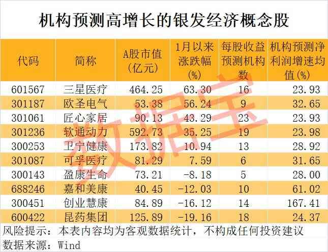 上述这10只高增长潜力的银发经济概念股中,截至12月13日收盘,4股今年以来累计涨幅超30%,分别是三星医疗、欧圣电气、匠心家居、软通动力。另有4股今年以来累计下跌,分别是昆药集团、创业慧康、嘉和美康、盈康生命。