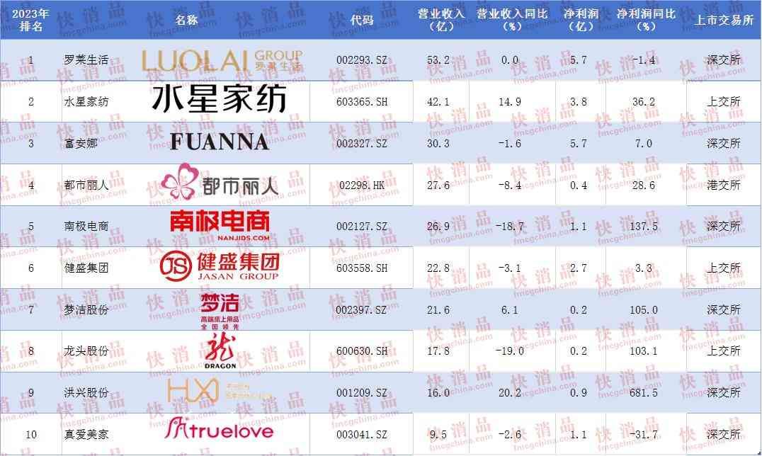 纺织业股票排名前十,【独家】“2023年中国大快消上市公司之针纺10强”公布!