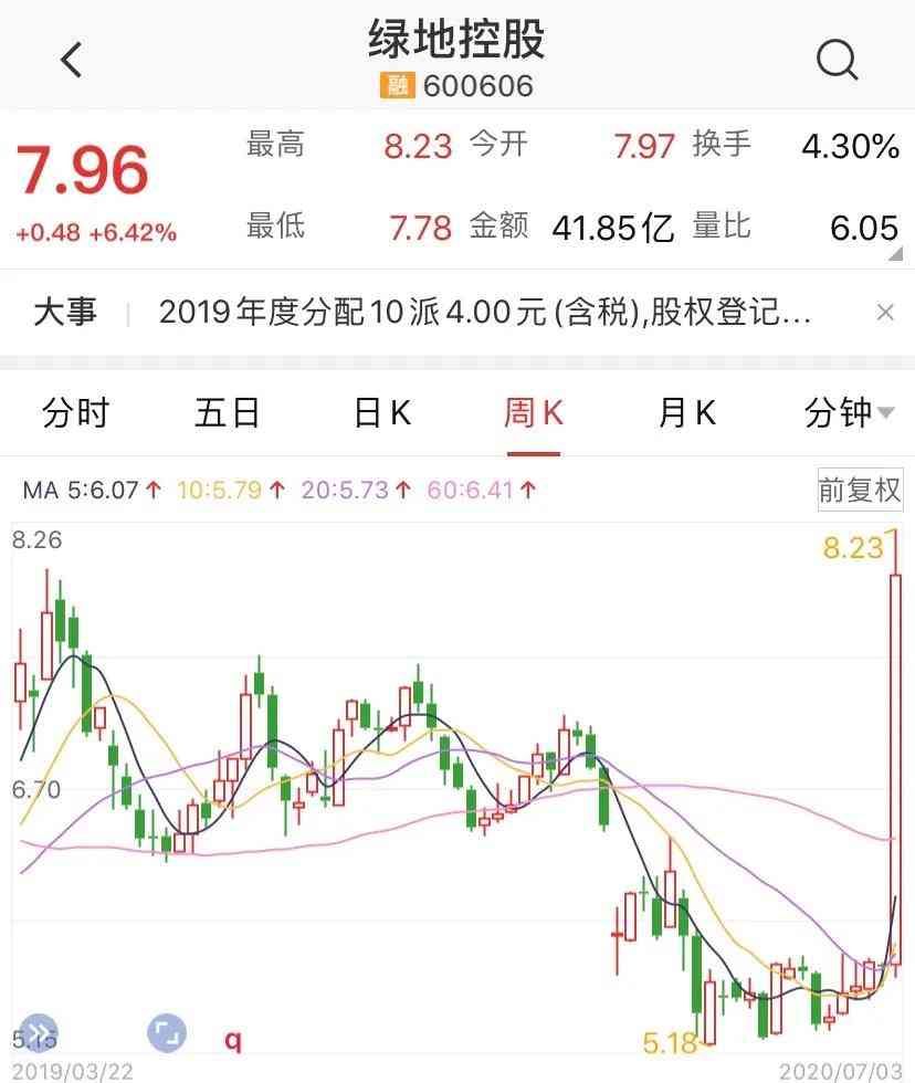 那我们再来看一下,为何绿地控股迎来一顿暴涨?