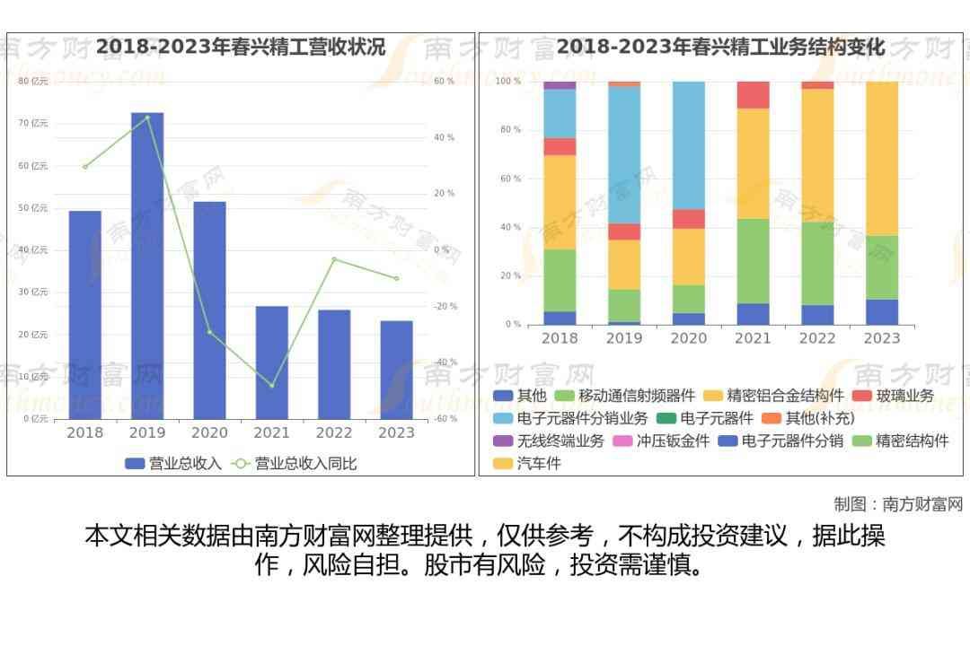 春兴精工于2011年2月18日在深圳证券交易所上市,公司主营业务为主营精密轻金属结构件、移动通信射频器件、消费电子产品塑胶结构件以及冲压钣金件的研发和制造业务、汽车零部件领域的精密铝合金结构件、电子元器件分销。