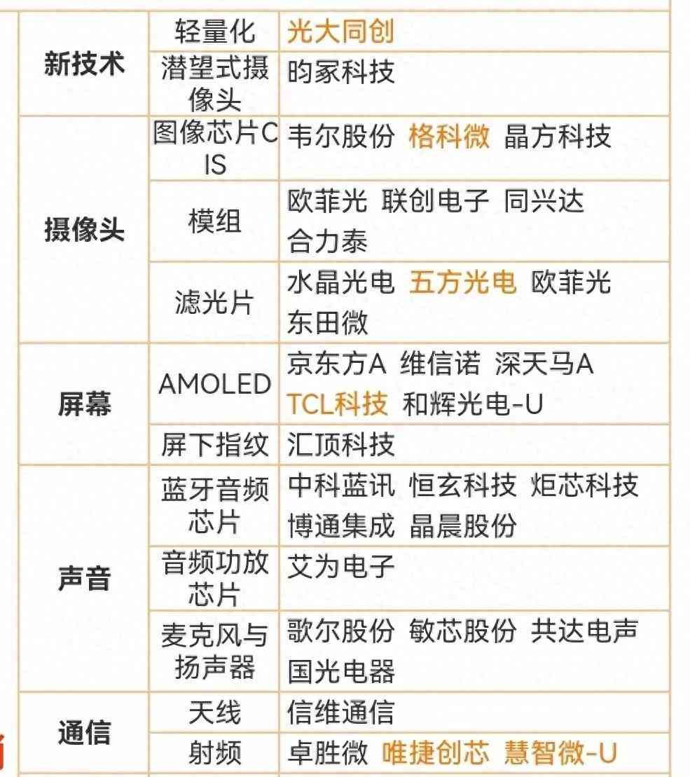 • 包括显示屏、锂电池、电声器件、光学器件、射频器件、连接器、外壳等组件的供应。