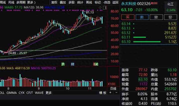 除了此因素,大跌的因素预期还有涨幅过大,引发获利盘兑现调整的担忧。一个是湖北宜化发公告称还没有直接供货,引来闪跌停。但这个是很正常的公告,刚合作哪里可以立即有供货?不可能这么快,所以震荡只是事件性因素。对于永太科技闪跌停,一个高开出现闪跌停,吓的,利好兑现见光死。不过大方向是宁德入股下,想想也预期不敢跌到哪去。市场的规律中,技术也是集中度非常高的,价值投资利好行业龙头,这是自然规律的体现。