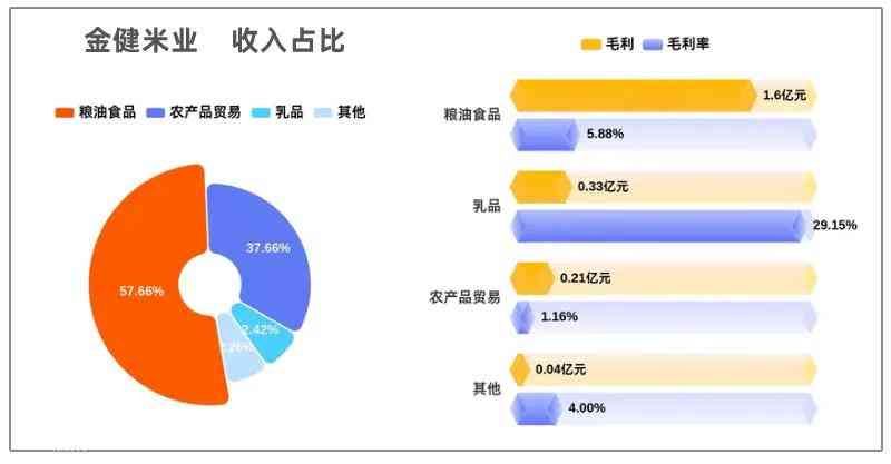 粮油食品为金健米业的核心业务,2023年产品营收额27.2亿元,整体毛利率为5.88%。