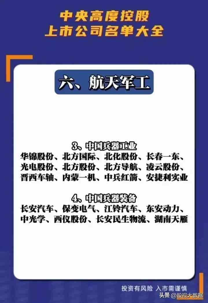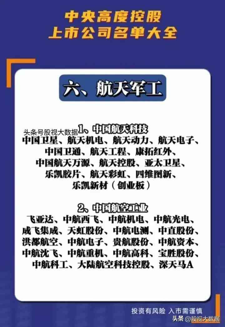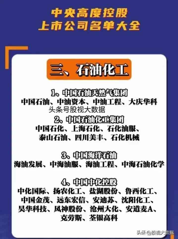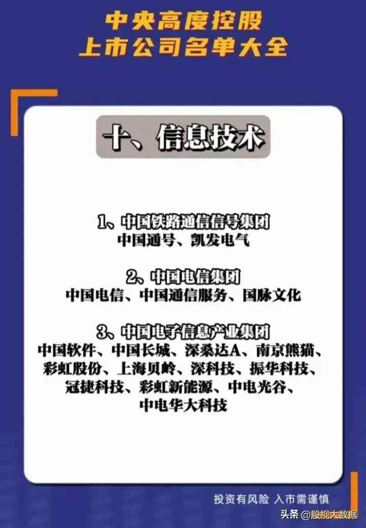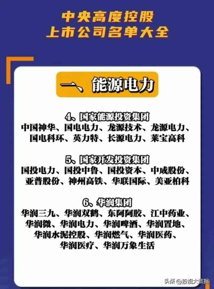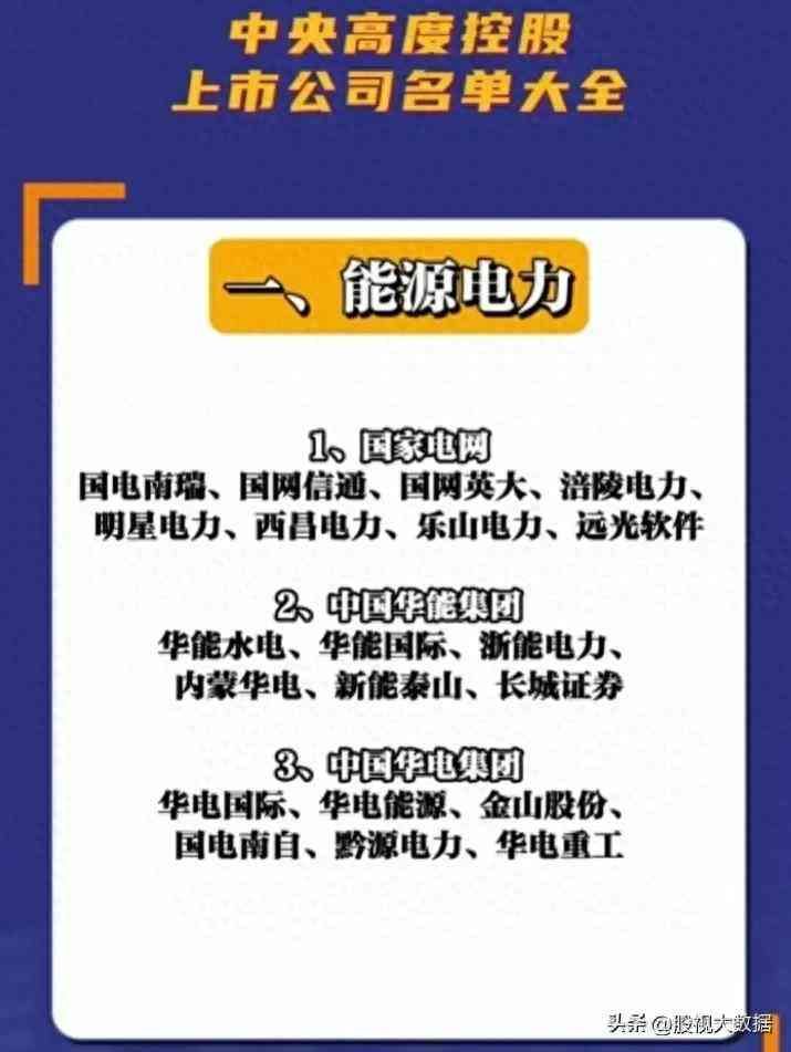 央企高度控股上市公司名单大全,包含十大领域:能源电力、信息技术、航天航空、资源矿产、物流建材、汽车设备等等
