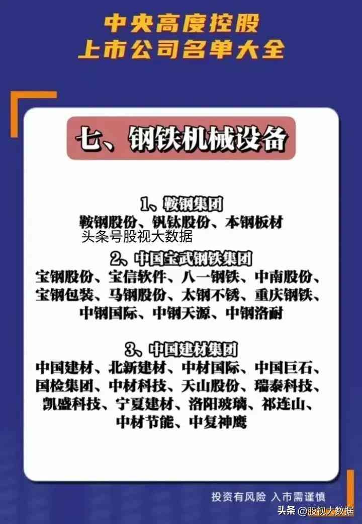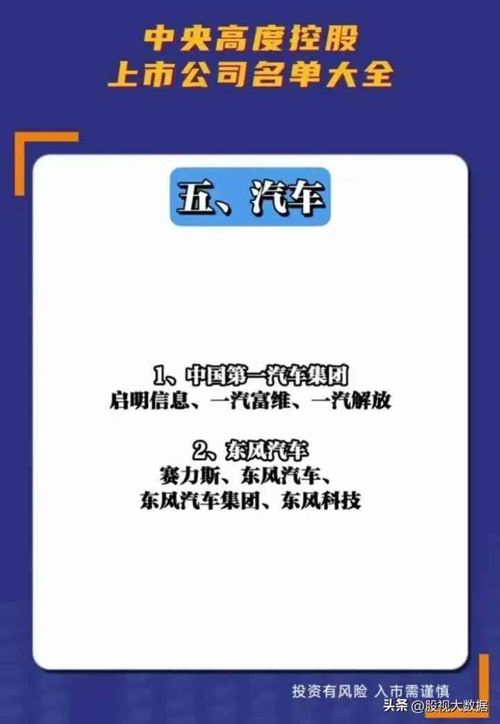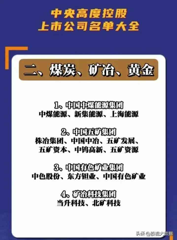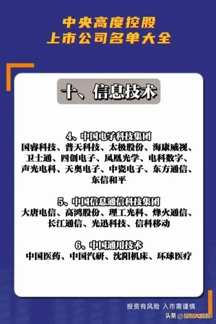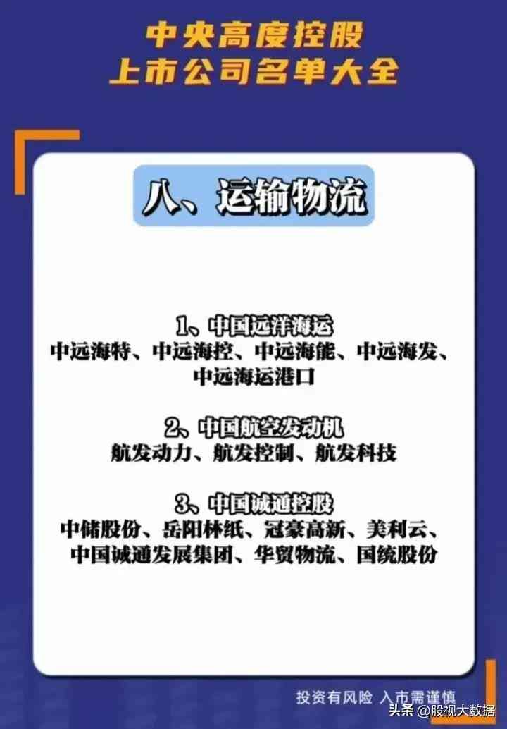 央企高度控股上市公司名单大全,包含十大领域:能源电力、信息技术、航天航空、资源矿产、物流建材、汽车设备等等