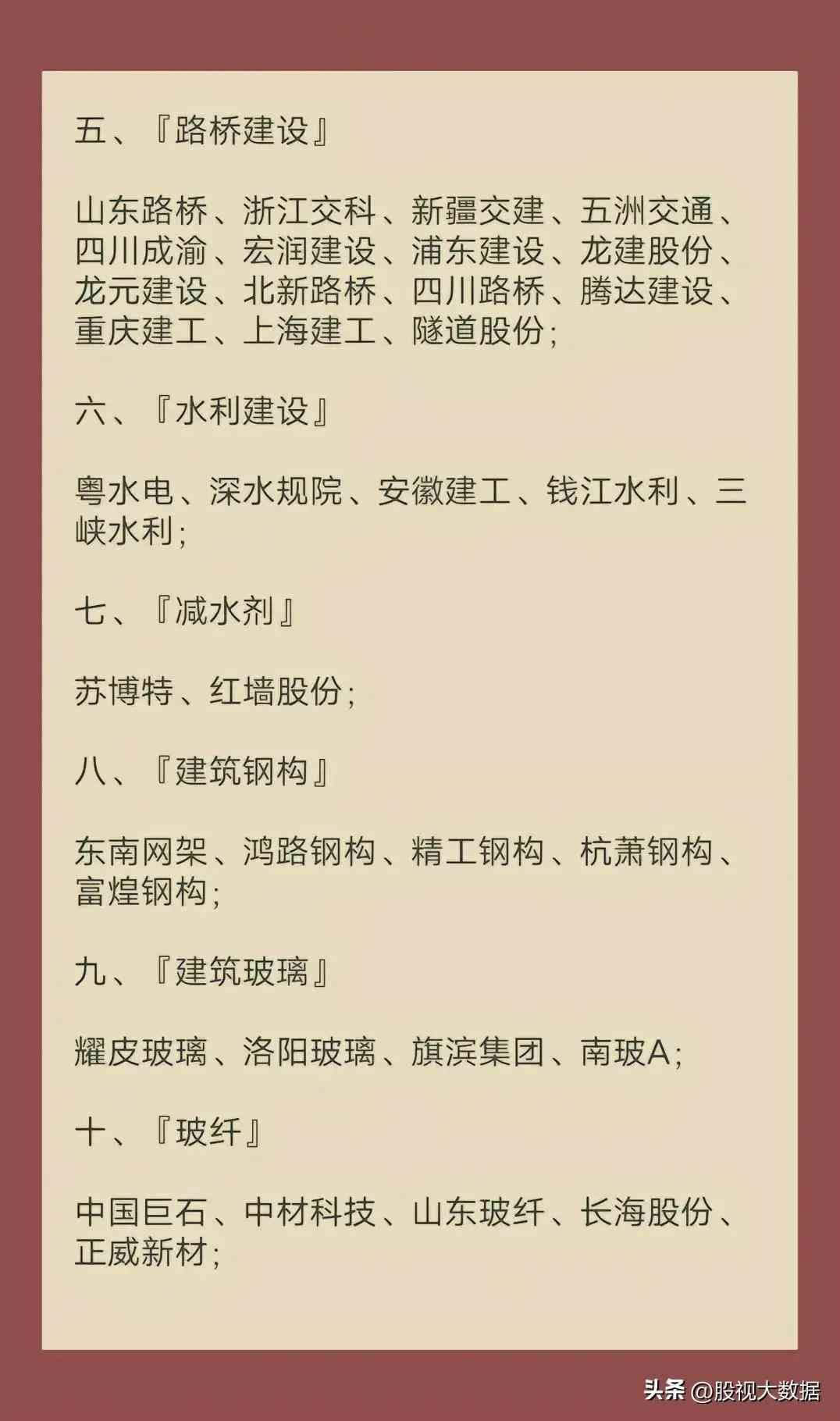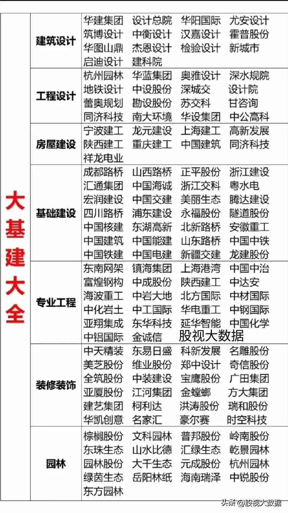 大基建概念股票大全!