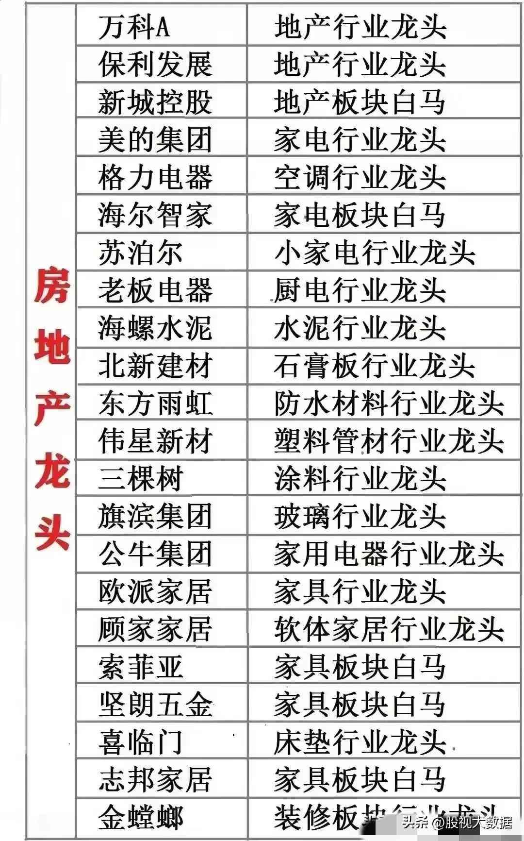 房地产行业龙头梳理!