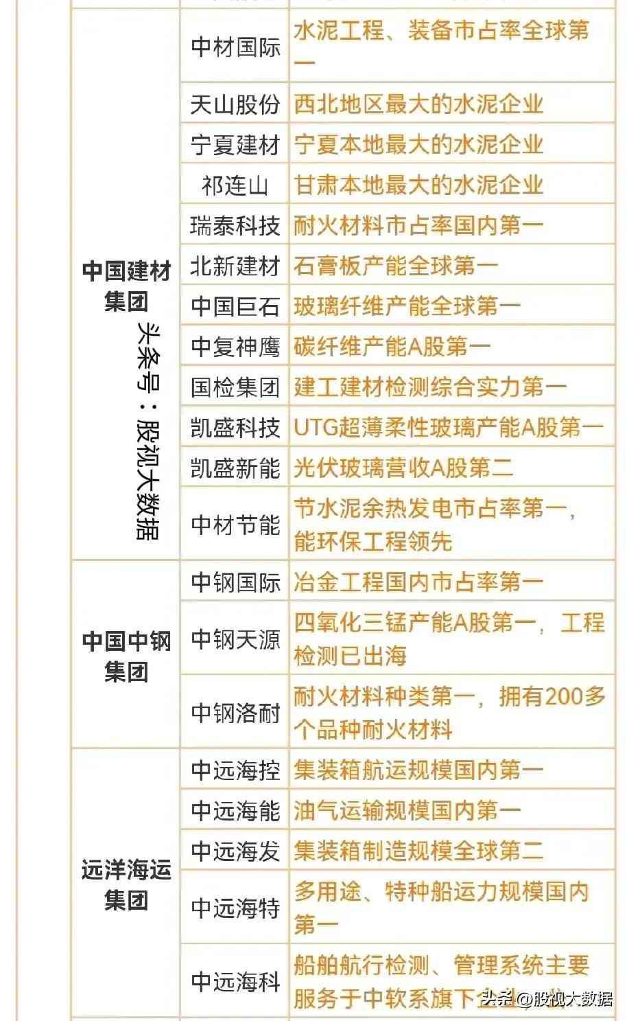 中国建材集团控股上市公司12个。