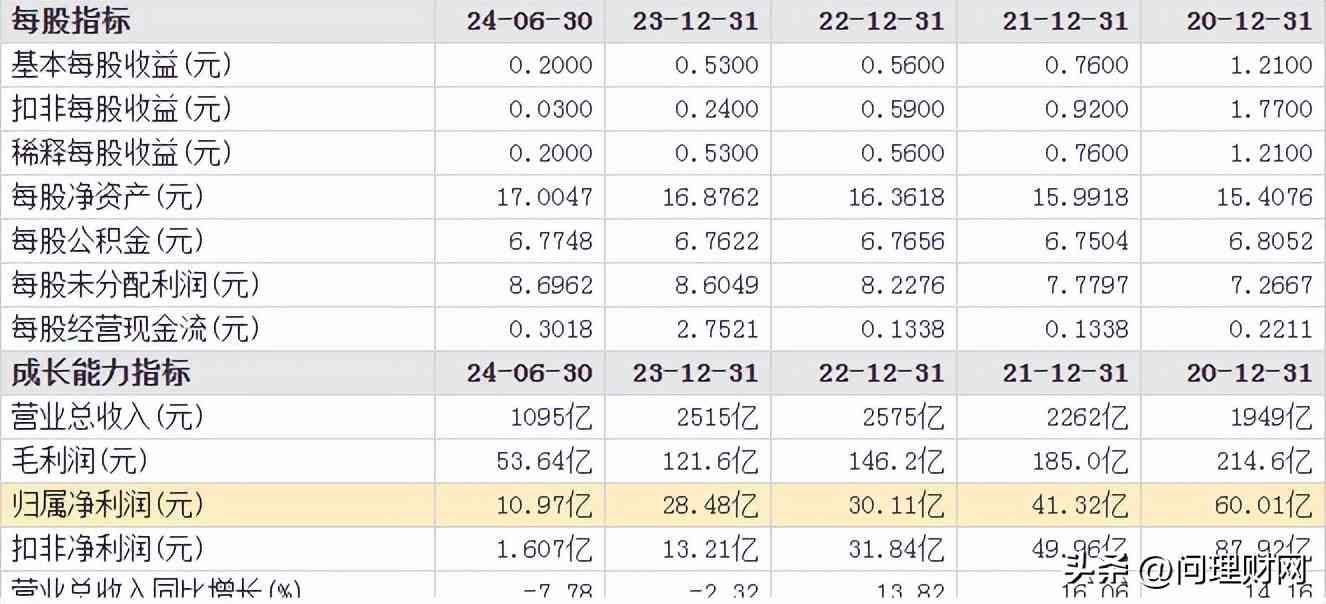根据半年报显示,公司2024年上半年实现营收1095亿元,同比下降7.78%,实现净利润10.97亿元,同比上涨13.57%,但扣非净利润仍只有1.61亿元,不过相比去年同期增长1013.79%……