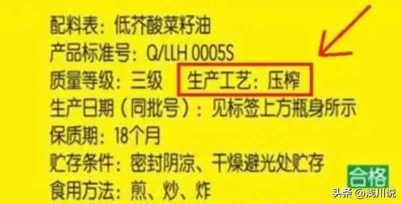 选购食用油不但要看它的执行标准,还要看它的加工工艺,在配料表一栏中就有,其工艺主要分为两种,一种是压榨工艺,另一种是浸出工艺。