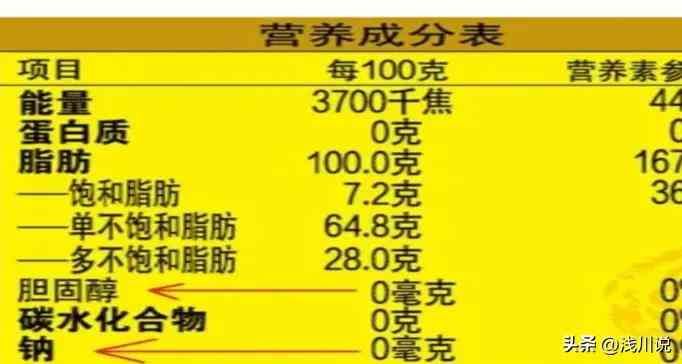 然后再看胆固醇和钠含量,这两个含量一定要为零,如果不是,则品质不好,同时不建议年纪大的人食用。因为中老年人摄入过多胆固醇,容易引起高血压、冠心病等疾病。所以买油的时候,一定要格外注意它的营养成分。