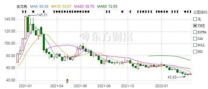 3月16日,金龙鱼股价创下近一年来最低点45.82元,较最高点已跌超68%,市值缩水超54亿元。