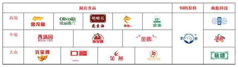 年报显示,金龙鱼已建立了覆盖高端、中端、大众的综合品牌矩阵,旗下拥有“金龙鱼”“欧丽薇兰”“胡姬花”“香满园”“海皇”“丰苑”“金味”“锐龙”“洁劲1”等知名品牌,在各细分市场均保持市场领先地位。