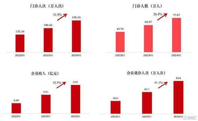 固生堂的门诊人次、会员就诊人次以及会员贡献收入近几年都在不断增长,截至2024h2,公司门诊人次同比增长31.9%至238.33万,服务人数同比增长26.4%至77.07万,会员就诊人次同比增长51.1%至93.8万,会员收入同比增长52.5%至5.81亿。