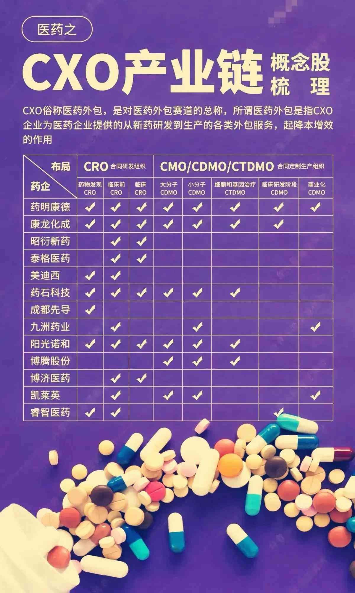 药明康德、康龙化成、药石科技、阳光诺和、凯莱英等。